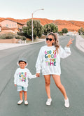 God is good sweatshirt outfits for mom and daughter
